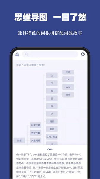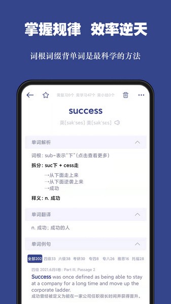 词根单词app是一款能够为用户们提供全新的单词记忆方法的软件,还根据艾宾浩斯遗忘曲线来设计了更加科学合理的记忆周期,让大家可以记得又快、又好又牢。软件使用起来既方便又简单,科学的记忆规划可以让用户们的英语学习和单词记忆变得更加简单省事,也能够获得更好的学习效果。此外,词根单词中还提供了非常多的记忆词库,能够满足大家的学习需求。