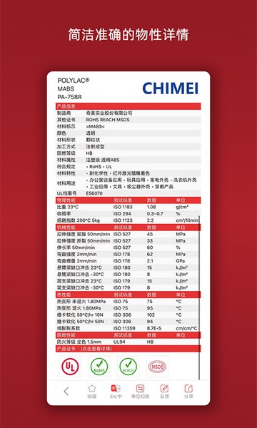 物性表:汇集全球1000+家化工厂,800+材料种类,20万+材料牌号物性表、UL黄卡。