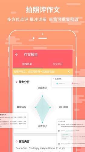 提供包括单词拼写、语法表达、篇章结构等多个指标的逐句批改报告。