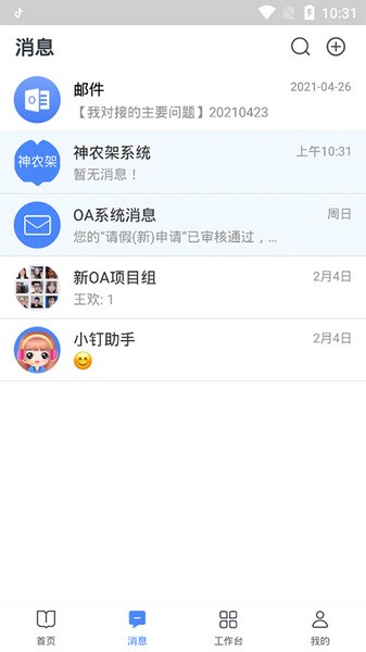 工作台页面中,可以接收到通信助手的消息动态,可看到企业当前的销售简报。