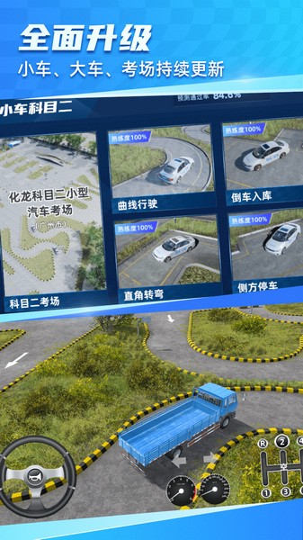 2、科目三驾考模拟:包含上车准备、起步、会车、掉头、变更车道等16项练习项目,更有汽车模拟考场练习、停车游戏,体验路考全流程的驾考一点通!