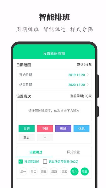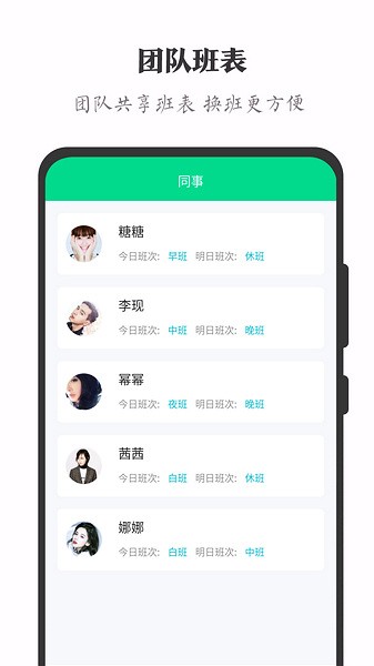 为倒班人群专门设计的的专属日历班表,支持手动和自动两种排班方式。