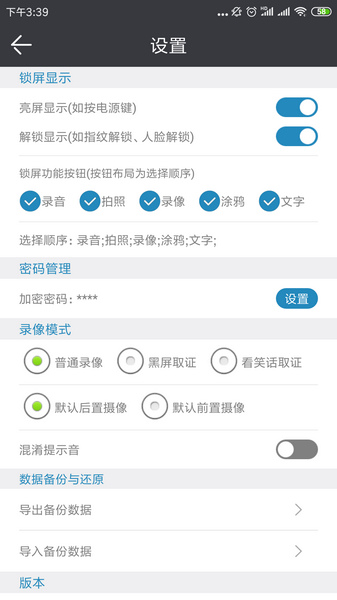 软件功能挺多的,比如黑白屏录像取证、设置密码锁、涂鸦记录、自定义锁屏按钮等等。特别是录音和录像功能,可以把重要的事情保存下来,还可以用涂鸦工具在白板上画画,感觉有点像创意笔记本,适合喜欢多样化记录的人。