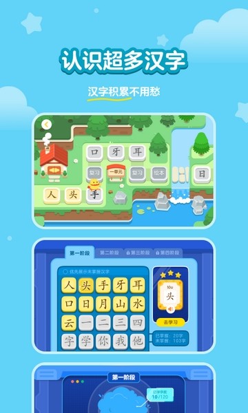 1、让孩子采用冒险通关的方式进行学习汉字,关卡十分的多;