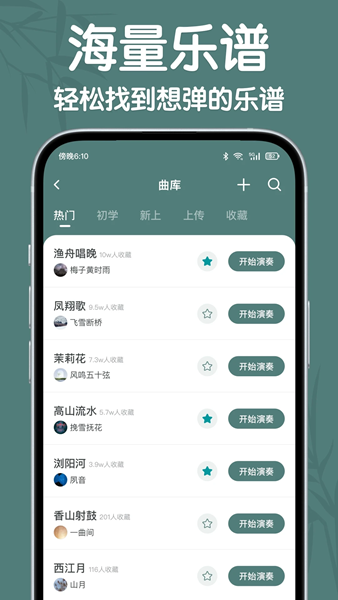 海量热门流行乐曲,找谱练习、乐曲演奏更方便。