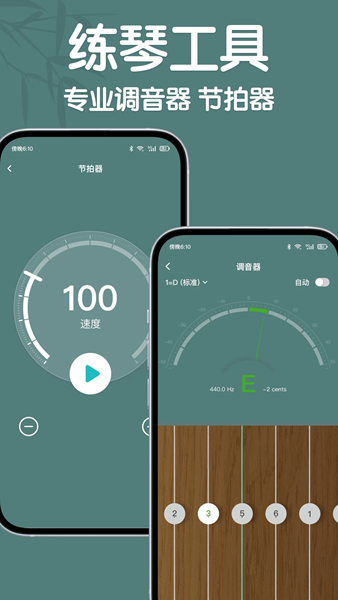 内置专业调音器和节拍器,帮你快速调准古筝弦,掌握演奏节拍。