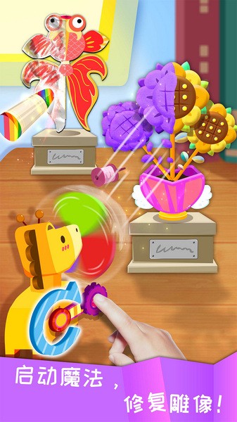 这款游戏看起来挺有意思的,是专为小朋友设计的环保手工游戏。里面有很多手工艺活动,像彩绘、剪纸、贴花这些都很适合孩子动手做,还能培养他们的环保意识,比如变废为宝,把旧东西改造成有用的东西。游戏里还有魔法元素,比如挥动魔法棒会让花盆雕像发光,挺酷的!还有各种小道具,像小剪子、胶水、彩笔等等,感觉玩起来不会太难,孩子能很快上手。