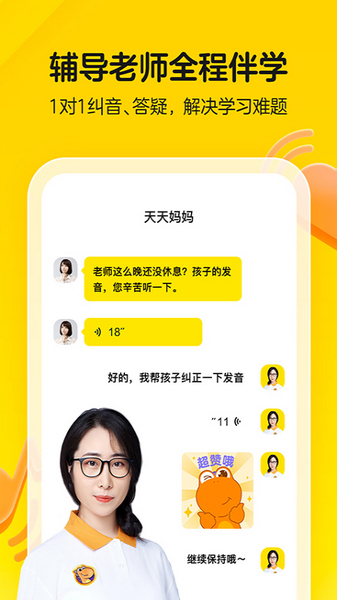 2、辅导老师全程伴学,1对1纠音、及时答疑,解决学习难题;