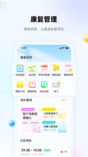 儿童每日在学校的训练情况、课堂表现以及康复师评语,都会自动生成随堂报告同步给家长,让家长能实时掌握并跟进儿童的在校动态,直观了解儿童在训练中的不足与蜕变。家长的自主训练情况也会通过盼盼树同步给康复师,以便康复师能及时地与家长进行沟通,调整训练计划。老师在课后还会布置家庭作业,家长可以通过图片、视频、音频的形式提交作业,实时查看康复师的点评,还有机会被评选为优秀作业。家长通过家庭作业,可以让训练融入并泛化到儿童的日常生活中,巩固儿童在校的干预成果,防止急速遗忘及能力倒退,让家校共育更简单高效;