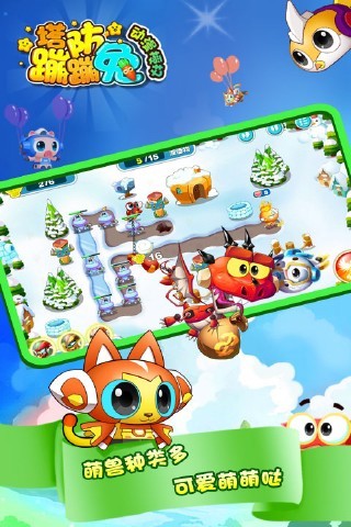 蹦蹦兔塔防是一款非常好玩的策略塔防题材手游,该游戏的画面非常精致,采用了Q萌卡通的画风,并且游戏是根据动漫灵动蹦蹦兔改编而来的,很好的还原了动漫中的角色,然后玩家可以选择自己喜欢的角色进行游玩,需要建设各种不同的防御塔来抵御敌人的进攻,同时还可以对防御塔进行升级,增强自己的防守能力,游玩起来也是非常考验玩家的策略性的。