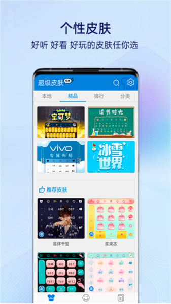 2、在皮肤界面用户能够看到当下最为热门的皮肤,可以让你的输入更加美观
