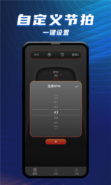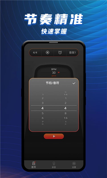 BPM自由调节:节拍速度范围高达250BPM,支持用户自定义,找到最合适的练习节奏。