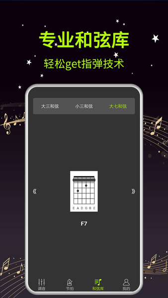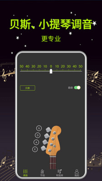 吉他调音器大师:免费专业调音器,调音精准!吉他调音,尤克里里调音,古筝调音,二胡调音,大提琴调音,小提琴调音。还带节拍器,支持音色选择,完美适配各种乐器。