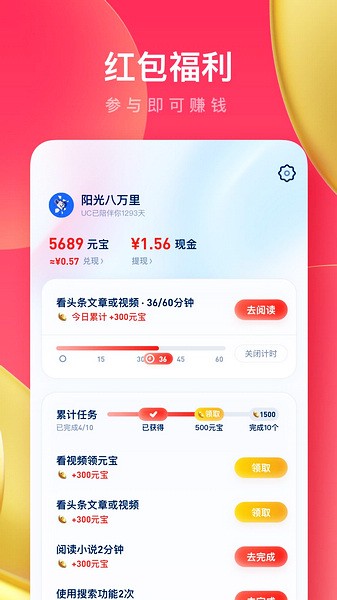 软件里面为用户提供了多样的红包福利,用户可通过完成任务赚取现金。