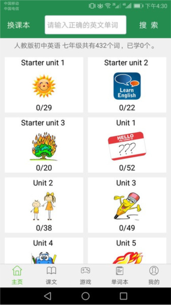 学生可以在此预习或是复习英语单词,同步的英语教材可以任意使用;