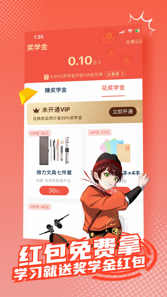 4.学习得奖学金,兑换错题打印机、文具、运动手环等多种新潮奖品;