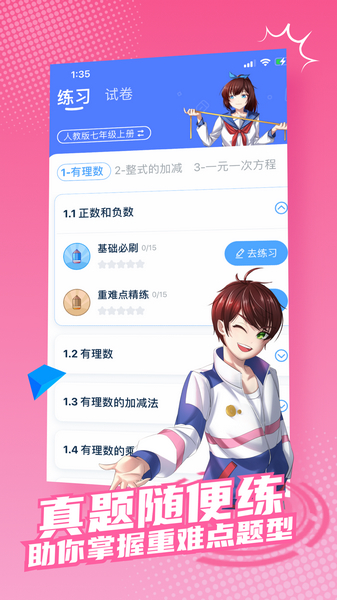 1.清北一线名师打造“二次元”动画辅导课,每课6分钟打牢初中数学基础、学懂学透必考重难点题;