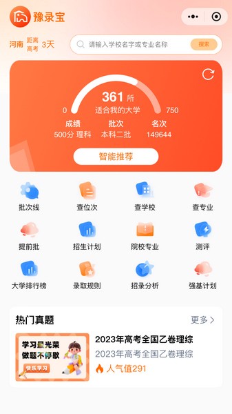 2、可以在软件上进行大学、专业、批次线等信息查询了解;