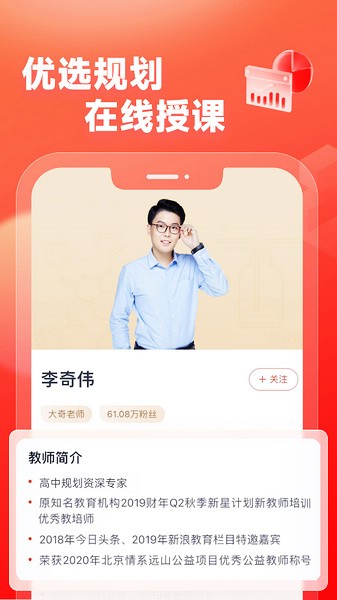 3、可以在这按照自己的年级选择课程,让你每天来这里学习,按照自己的复习计划来练习各种题库,也可以在这里进行志愿规划,还有各种各样的老师帮你规划。