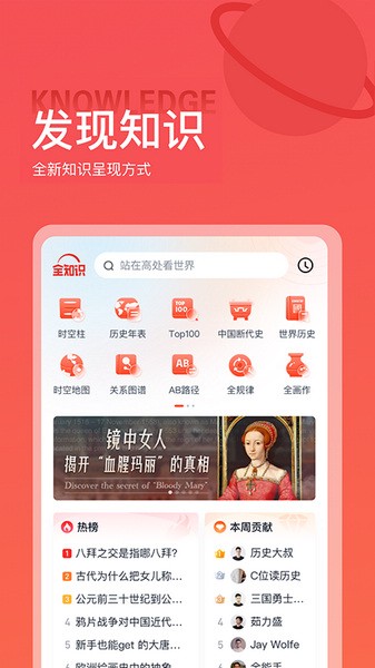 全知识app原来是叫做全历史,是一个在线教育软件,帮助用户用新的角度学历史。它通过地图、时间轴、关系图等方法展示历史,特别清晰。还有3D博物馆功能,可以看到很多珍贵的藏品,20多个频道涵盖各种知识领域。