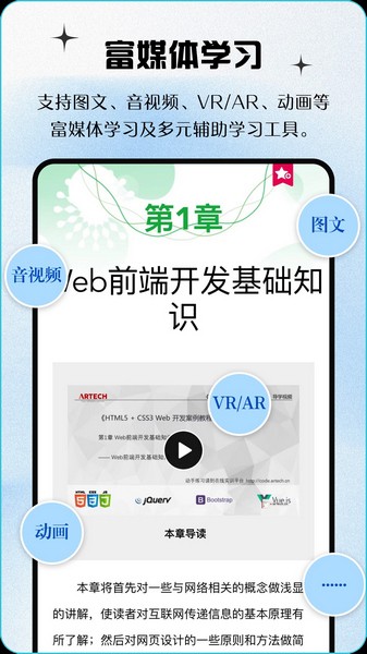 2.数字教材含有丰富的多媒体内容,穿插音视频讲解,扩展阅读,ar/vr等。