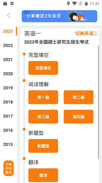 1、全面覆盖:涵盖英语、政治等方向,精制历年真题,海量专题、模拟测试、冲刺试卷与专项提升系统,考研必备!