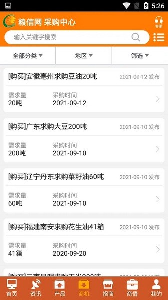3、在产品界面中,这是是粮信网供应中心,用户可以在这里购买各种粮油产品
