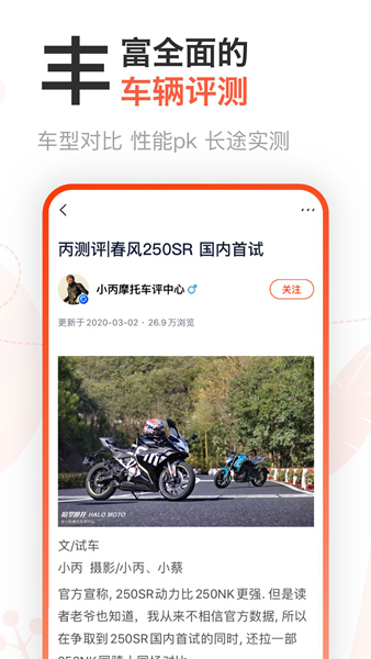 2、提供权威的大咖的摩托车评用户众多的真实用户评价;