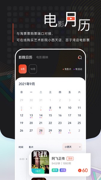 【抢票新渠道】在淘票票的技术支持下,“中国电影资料馆”APP通过与淘票票购票端口对接,实现了在APP上购买艺术影院小西天店和百子湾店电影票的功能。“电影月历”的展示方式,使得用户查看排片和购票更为直观、便捷。