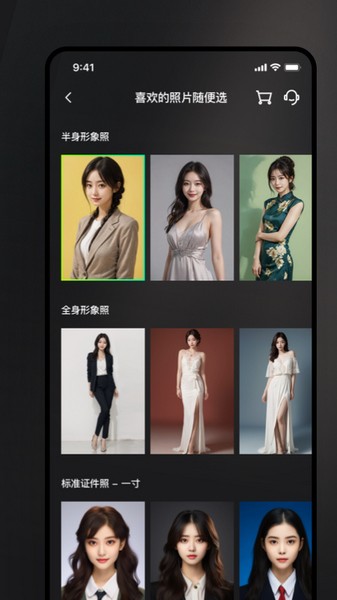 为用户推送有标准证件照的模版,让用户可随意挑选标准证件照进行制作使用