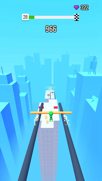 2、屋顶棍棍侠的操作玩法都是非常的有趣的,通过指尖不断的灵活左右摆动,完成更多的任务,将会获得大量的道具;