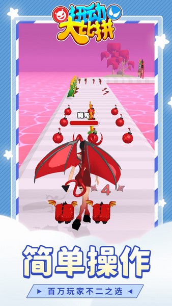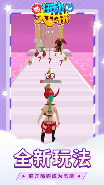 扭动大比拼是一款换装题材的跑酷游戏,玩家可以在这里控制角色一边前进一边收集途中的精美服装。这里的服装有非常多,而且一旦错过就不再有了,所以是需要玩家在短时间内思考出方案的。另外也是有很多敌人在路上阻拦我们,选择正确的道路去避开它们,然后迈向终点吧。此外随着选择风格的不同,角色最终会变成天使或者恶魔。