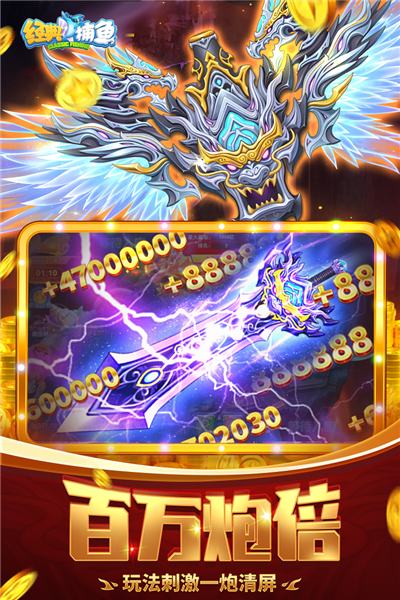 经典的街机捕鱼玩法,百万炮倍,满屏爆金,轻松一炮百亿炸翻天!