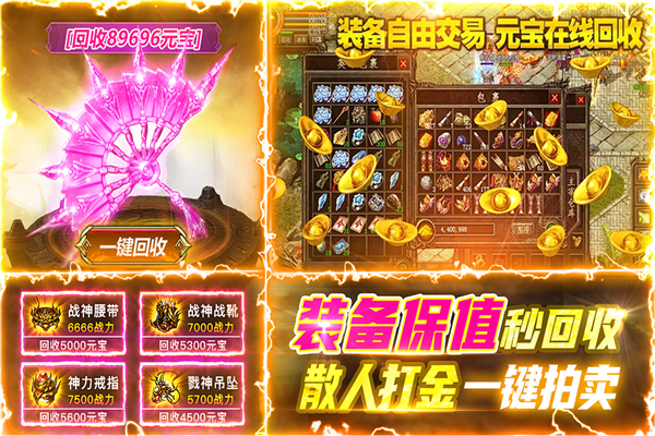 所有怪物都能爆元宝!回收装备也能获得大量元宝!