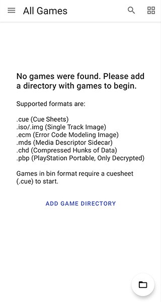 1、在本站下载安装并打开duckstation模拟器,使用手柄连接手机设备之后,点击左上方的三条杠按钮