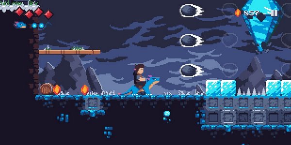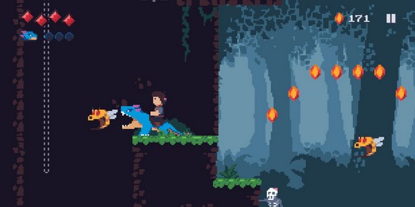 4、收集宝石增加自己的攻击性,除了需要收集道具之外还要躲避那些危险,在有限的生命之内达到下一关