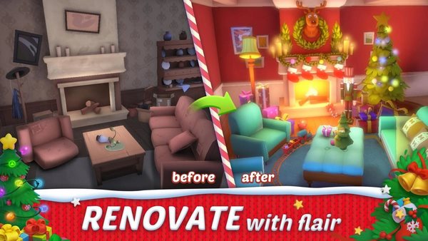 3、神奇地翻新您的豪华别墅-达到3级匹配水平即可解锁新房间。