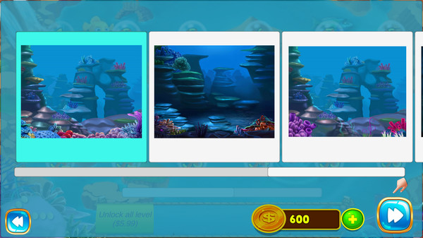 游戏音乐优美动听,各种音效也不错。你在游戏中可以听到气泡的咕噜咕噜的声音,还有海浪的声音,哗啦哗啦,来一起在游戏中体验海底的感觉吧。
