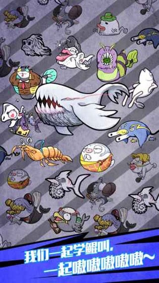 总体来说游戏的 玩法比较简单,进入游戏时,人手一只鲲,只要移动你的鲲宝宝,上下左右进行捕食,一步步的喂饱,经验蹭蹭蹭地涨,游戏右上角会显示能量条,也就是升级的进度条,而且离线也能增加能量哦。