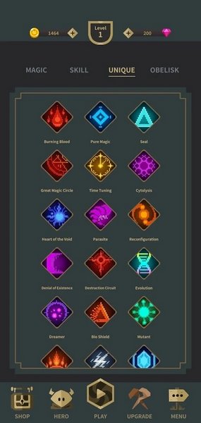 2、技能界面聚焦【UNIQUE】栏,依据战斗需求,挑选如【Burning-Blood】等独特技能,提升角色作战能力。