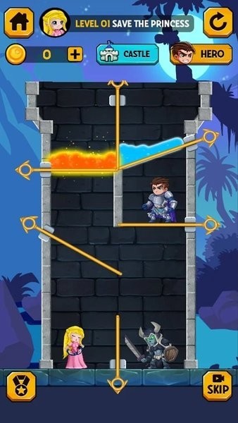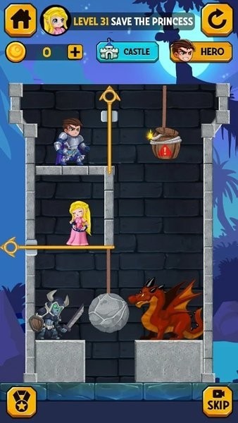 游戏中的每个关卡都充满了挑战和乐趣,摆脱守卫来救走公主的情节设计让人倍感紧张刺激。在拯救公主的过程中,拉动销钉、解开机关,一步步引导英雄前行。游戏中的英雄皮肤和装备道具更增添了趣味,让玩家可以根据自己的喜好进行搭配,感受不同的游戏体验。