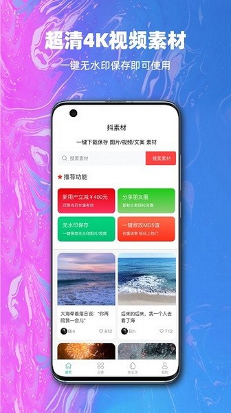 高清无水印的图片素材随心下载使用,可编辑视频可分享朋友圈分享微博,非常好用的生活小帮手。