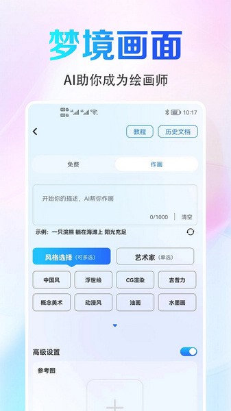 软件的功能也很强大,不仅支持多种艺术风格,比如复古美学、日式绘画、素画风格等等,还新增了古风二次元风格,满足各种创作需求。用户还可以把生成的作品分享到专属的画廊里,和其他创作者一起欣赏交流,感觉自己也能成为一个小画家了呢!