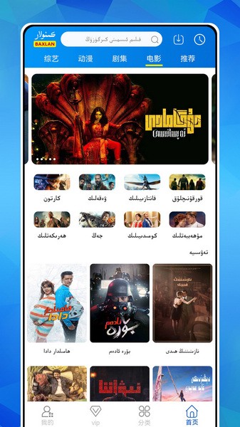 Baxlan Kino是一款采用维语的视频播放软件,软件除了有着丰富的影视资源之外,还给用户提供各式各样的译制视频作品。软件的分类也非常详细,除了常见的电影以及电视剧之外,用户完全可以观看喜欢的综艺节目以及动漫等内容。实时更新的排行榜单则能够帮助用户们更快的找到近期热门影片,软件给用户带来了极大的便利。