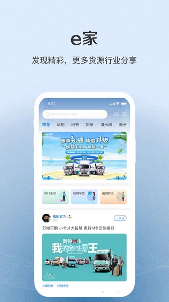 福田e家是一款由福田汽车官方开发的汽车服务软件,功能强大又方便实用。它不仅有车联网功能,还能提供二手车评估、车辆维修预约、救援服务、洗车美容等全方位服务,让车主省心又省钱。界面设计简洁明了,操作起来也很顺畅,基本上一点就能找到自己需要的功能。