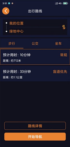 4、自动播报前进路线,视障人士步行的时候可以得到详细的前进路线播报;