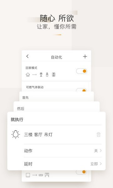 1、【智能场景】 从此智能更近一步,还没到家热水已经ready, 空调已经打开,客厅灯已经打开......
