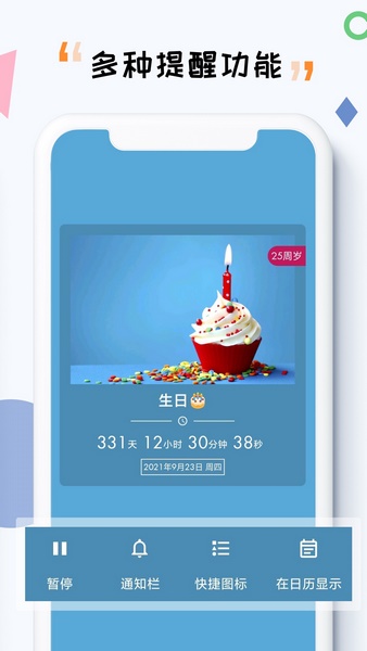实时展示您记录的重要日子倒计时,在app上轻松查看;