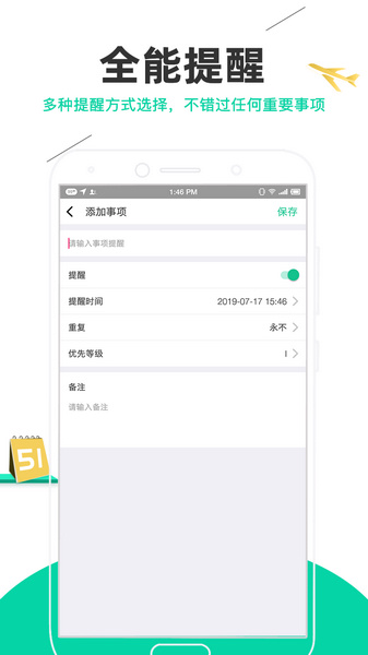 2、自定义提醒,定制专属于你的提醒消息与铃声,打造个性的用户体验;