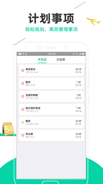 1、可视化的日程视图,以时间轴和日历的不同形式来展示你的日程安排以及任务进度,让你一目了然你的计划;